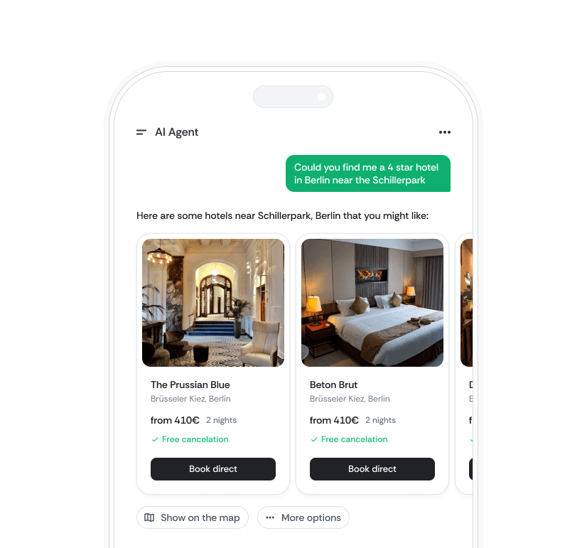 Guests book in-platform. The reservation and guest details go straight to the hotel.